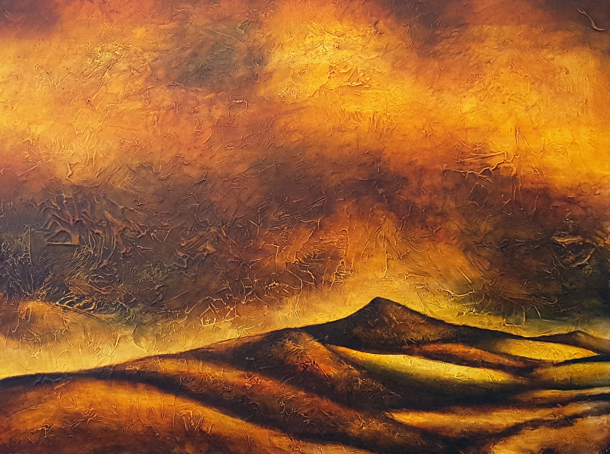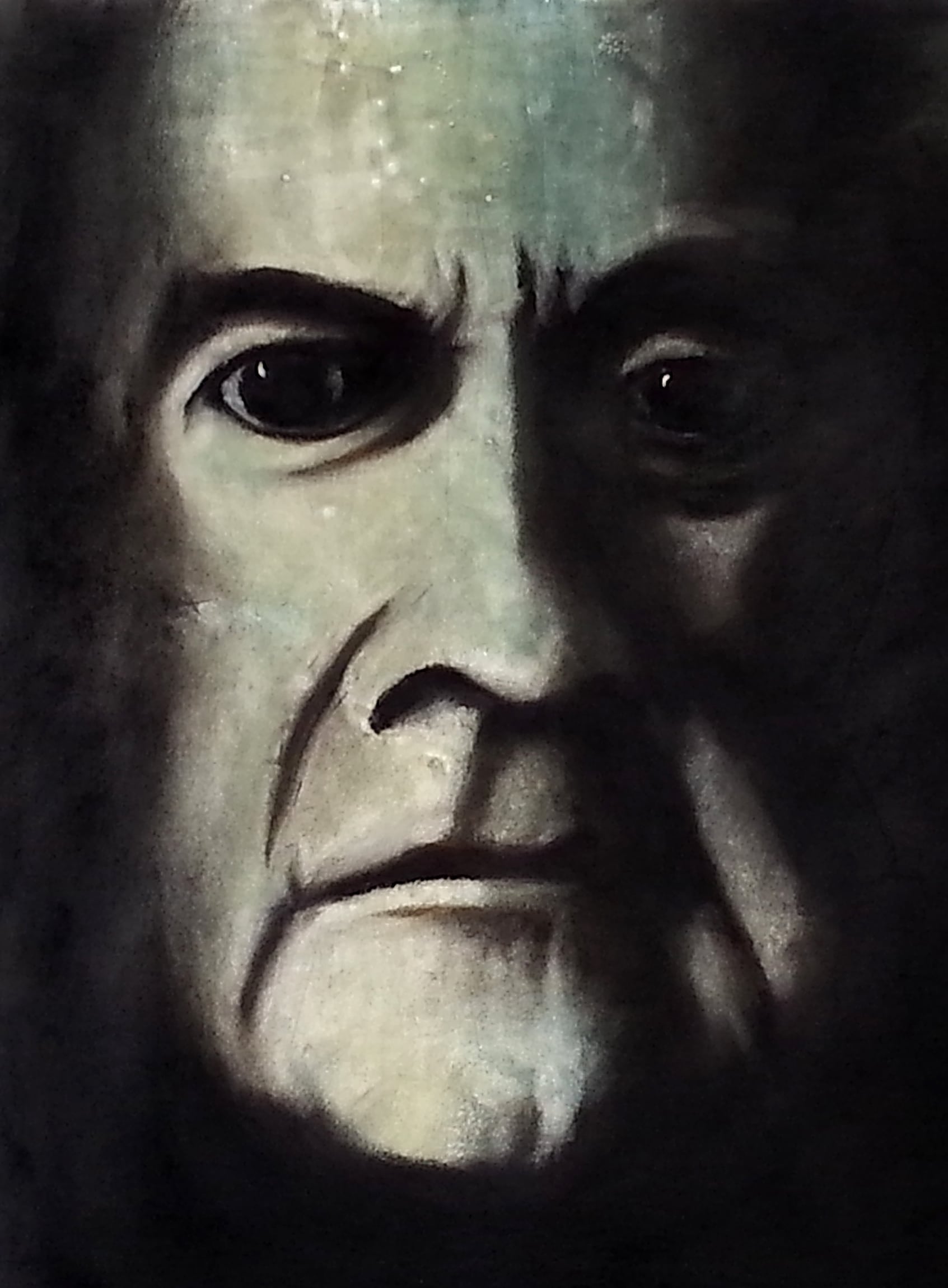I frequently produce paintings on (or prints from) distressed or textured surfaces to reference ideas of decay, of temporal concerns, or the layers of histories.